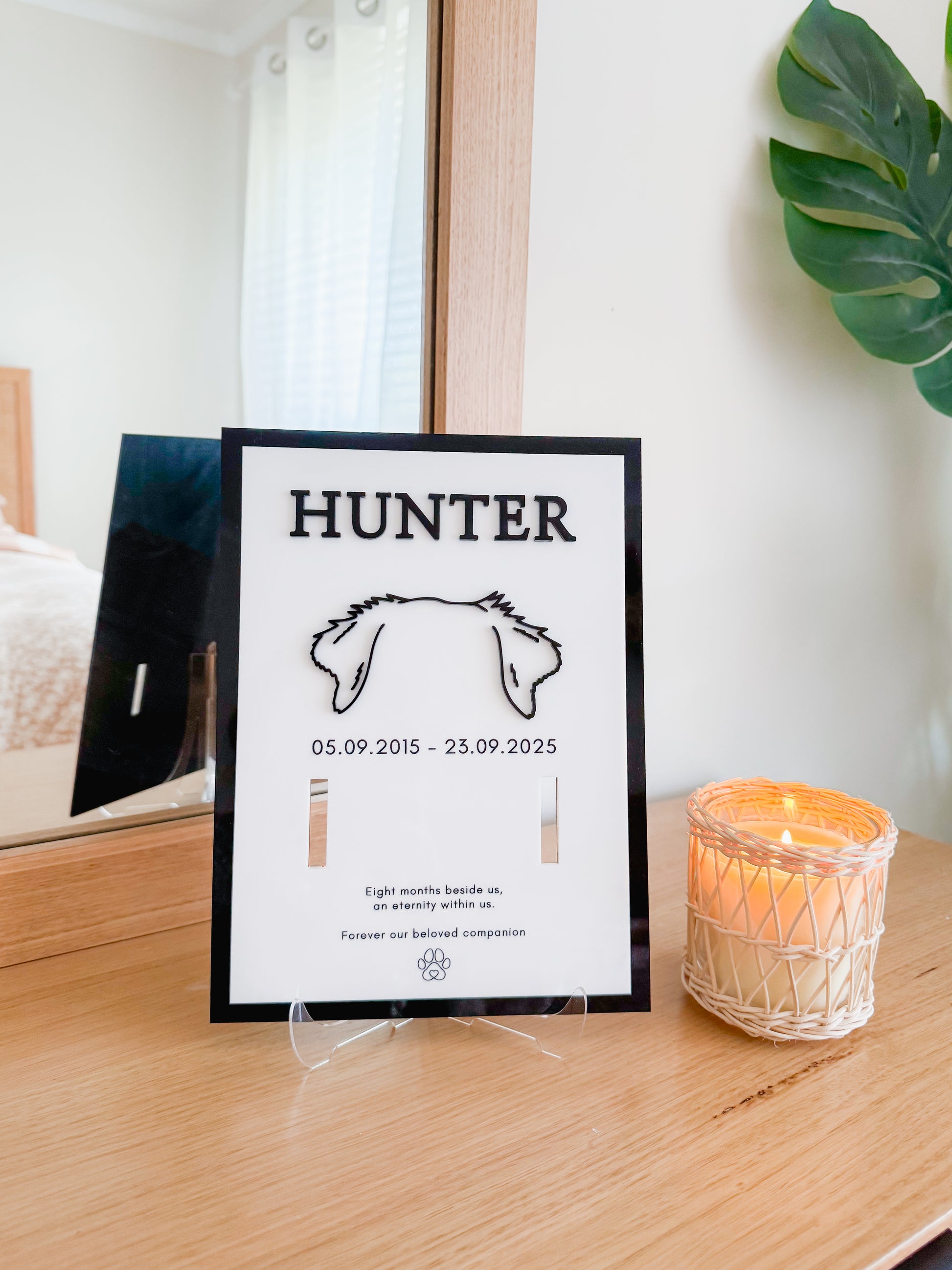 collar hole is made to fit all collars or smaller leads Each plaque comes with a clear acrylic stand, please let me know in notes if you’d like holes on your plaque to hang instead